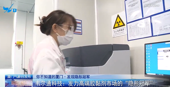 韦尔通科技股份有限公司总经办总监 李武义:半导体芯片其实在底部填充以及绝缘上面它是要求会更严格,所以我们在整个生产制造过程中,对湿度要求,对无尘车间等制造的环境要求会更高。我们有配合很多客户建立的恒温车间以及无尘车间,制造过程当中来满足客户对高端胶黏剂需求。