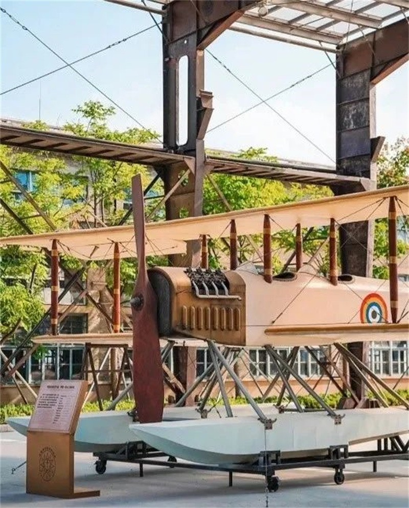铁胁厂是船政历史上重要的生产车间,2020年12月,其入选第四批国家工业遗产。这里现在也变成了工业旅游路线的特色打卡点之一。“活化是为了更好地保护”铁胁厂的改造也遵循着这一点,在对历史建筑最小干预的前提下,还原了工人们在自制铁胁和飞机装配车间的场景,引入了铁胁、飞机制造专题展,让历史活了起来。