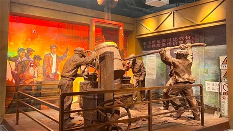 1958工业记忆馆设计了两重空间:一楼区域以“钢铁是这样炼成的”的主题进行了独具匠心的钢厂工艺展示区构建。