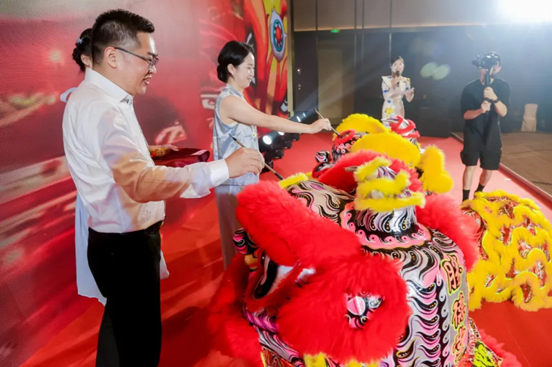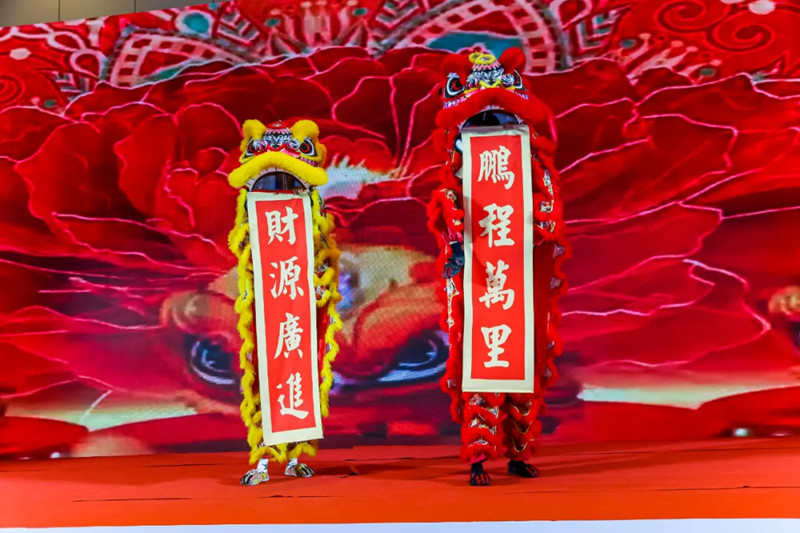 晚宴在激昂的鼓点中迎来震撼的开场表演——舞狮点睛!黄总为雄狮点睛,寓意唤醒祥瑞,为公司未来发展注入蓬勃活力与无限好运。祥狮腾跃,气势磅礴,瞬间点燃全场气氛!