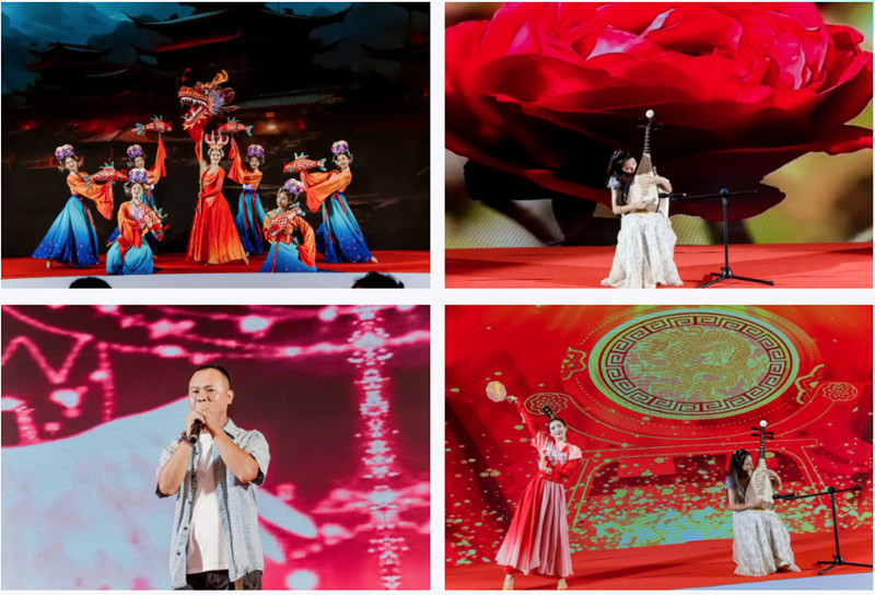 > 紧接着,琵琶名曲《金蛇狂舞》在激昂的演奏与动感伴舞中磅礴奏响,尽显欢腾喜悦。