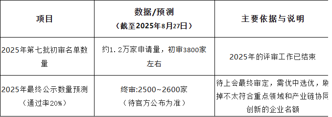 严格的审核机制:2025年的认定工作采用了更加科学、透明和高效的审核体系,信部将引入数据提取、人工智能、大数据等分析工具,加强申请数据的分析比对和逻辑判断。2025年的审核流程更强调省级初核推荐和部级审核认定的分段审核与多级把关机制,整体通过率控制在20%左右。